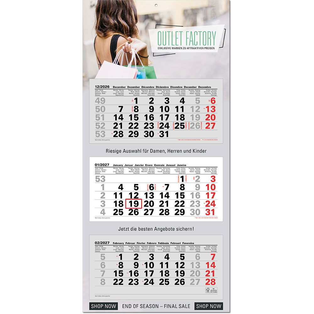 | Umfang | 1 Rückwand, 3 aufgeklebte Kalenderblöcke mit je 12 Monaten |