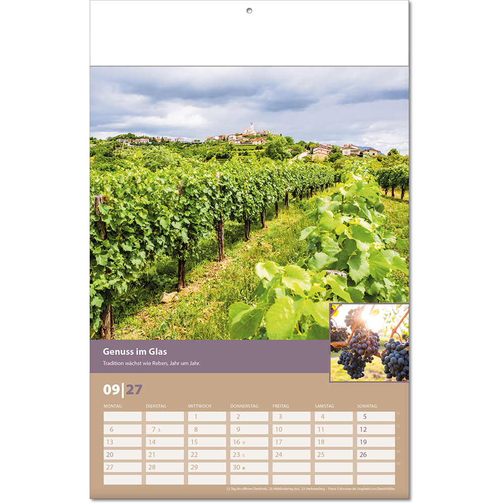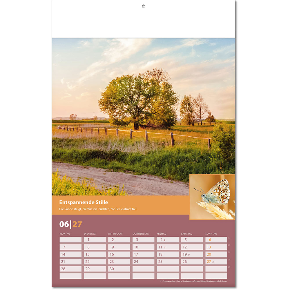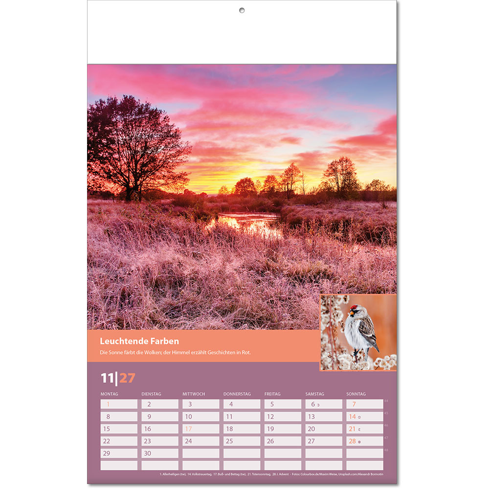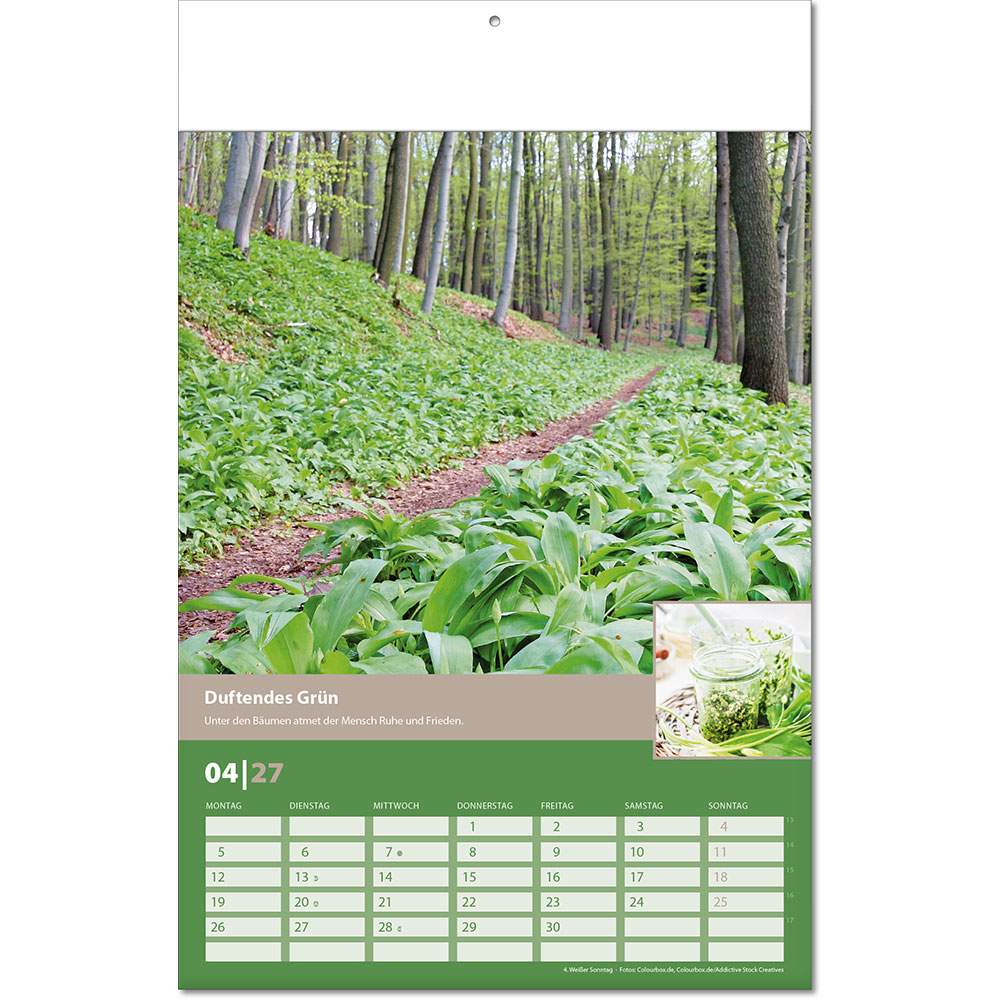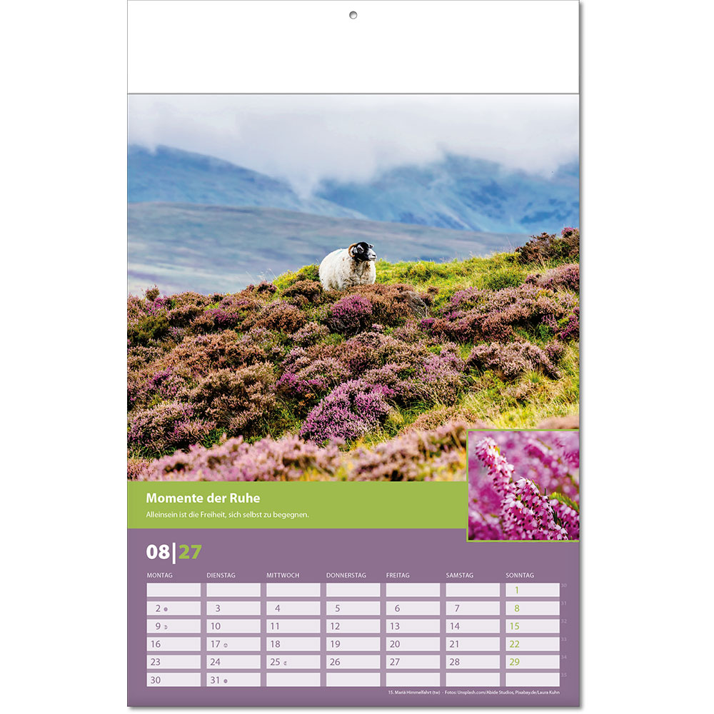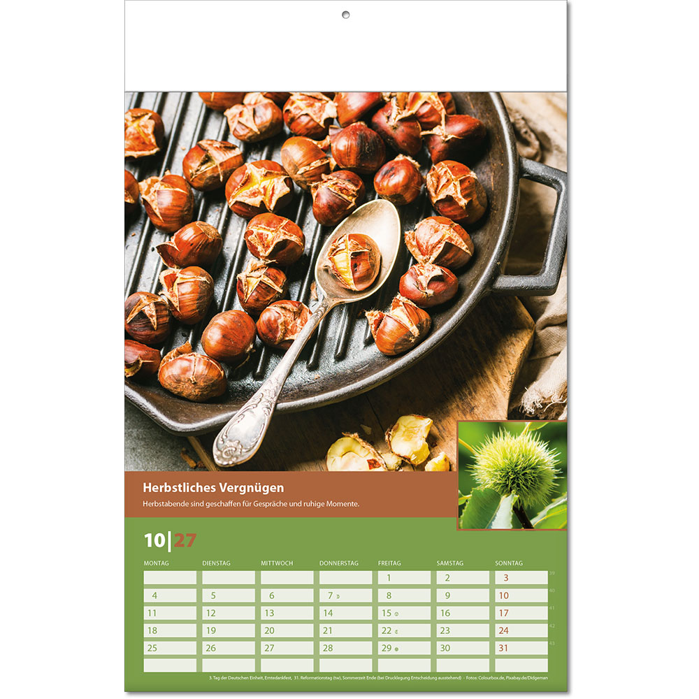 Angabe der Kalenderwochen Angabe der Mondphasen Notizfähiges Kalendarium |