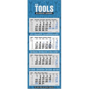 | Umfang | 1 Rückwand, 4 aufgeklebte Kalenderblöcke mit je 12 Monaten |